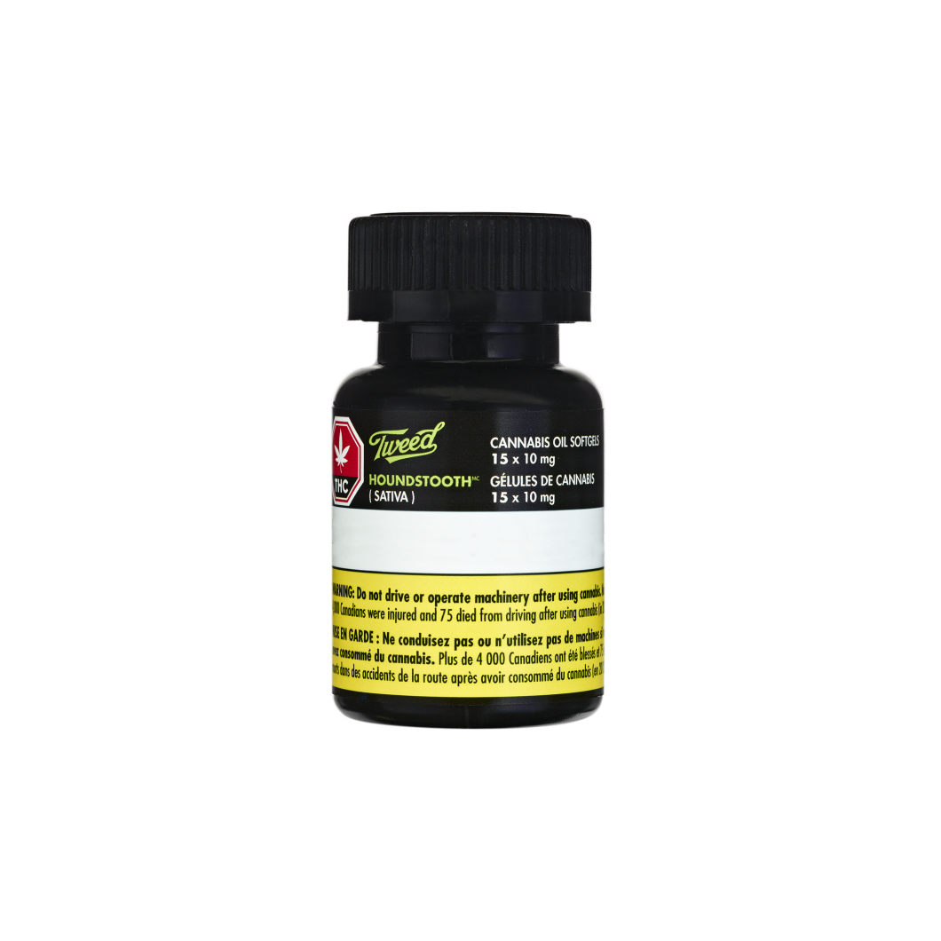 Houndstooth Softgels are made with sativa-dominant cannabis extract and boast lots of THC and minimal levels of CBD. The effects of this product can be felt within 30 minutes – 2 hours, and they may last for up to 12 hours or more. Some effects could last as long as 24 hours.