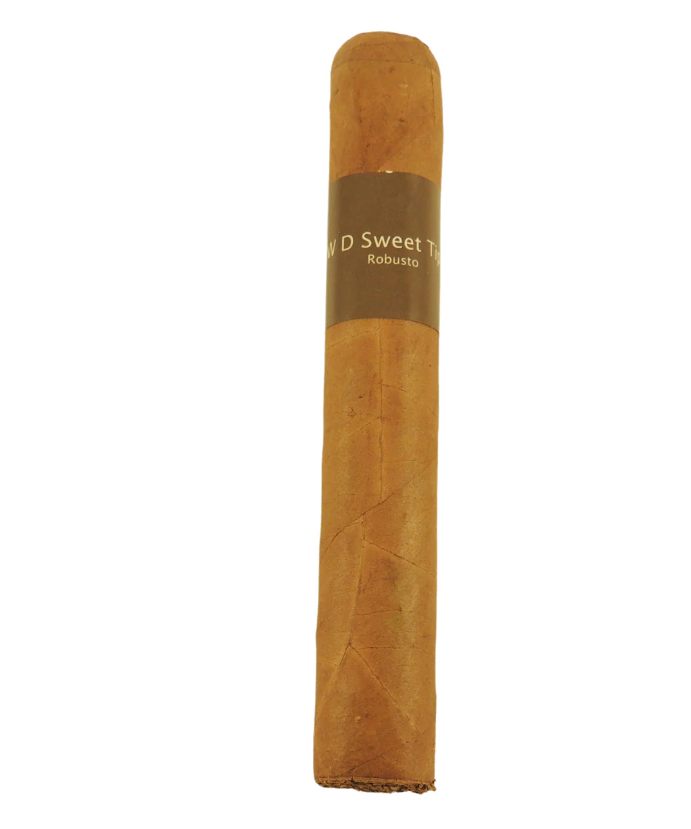 The W.D. Sweet Tip Robusto is a cigar that stands out due to its distinctive sweetened tip, designed to provide a smooth and flavourful smoking experience. The tip of the cigar is coated with a layer of sweetness, offering a pleasant, sugary flavour when you take your first few draws. This provides a unique smoking experience, especially for those who enjoy a sweeter introduction to their cigars. The sweetened tip gives it an initial sugary flavour, which transitions into smoother, mild tobacco notes as the cigar burns. The blend of flavours can be described as sweet, creamy, and slightly woody with a touch of spice toward the end.