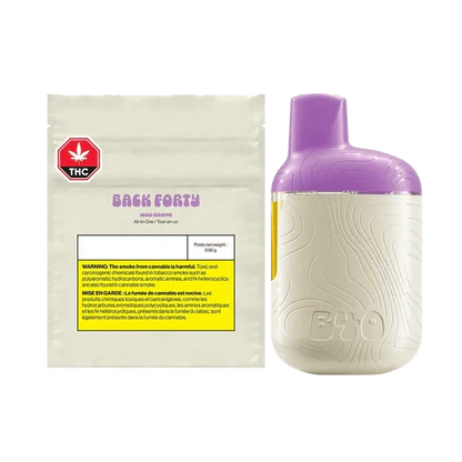 Our new all-in-one vape hardware is designed to put the Back Forty in the palm of your hand. With a 0.95g fill, compact design, and rechargeable battery, it’s the perfect balance between function and format. Now available in Iced Grape, a Sativa blend that hits like a glass of sweet and tangy grape juice with a blast of cool menthol on the exhale. This Iced Grape flavour and potency punches in bunches!