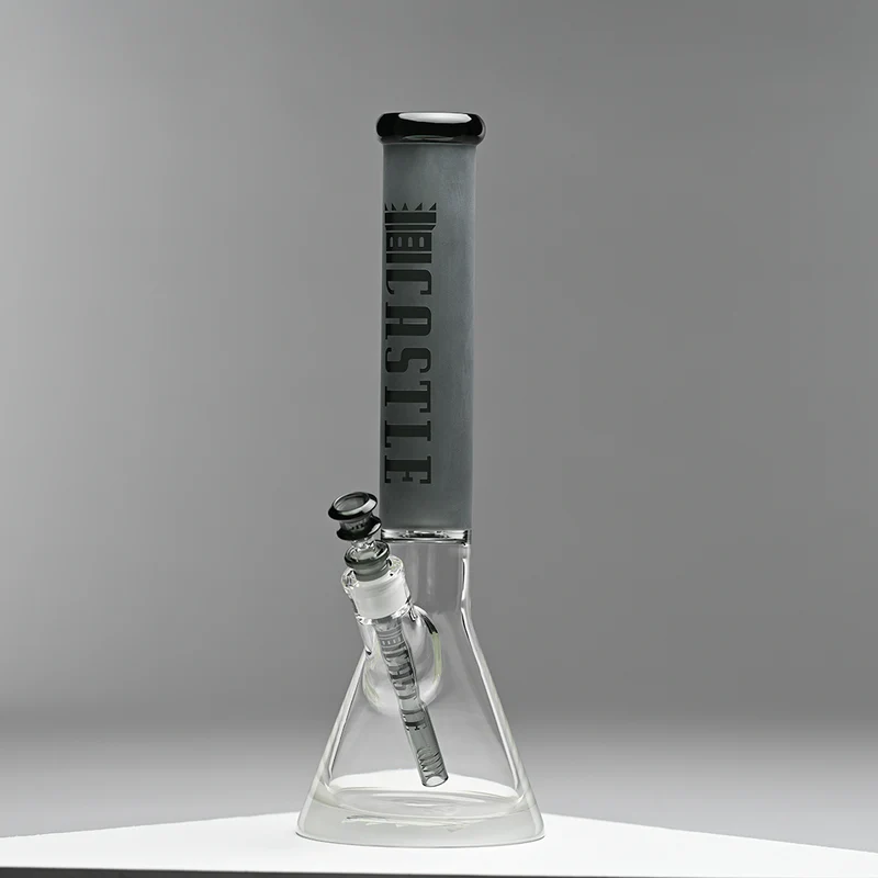 The frosted finish continues down to the base, showcasing an embossed Castle crown logo for an added touch of class. Each bong includes a matching colored downstem and bowl, making it both stylish and functional, perfect for those who want to stand out while enjoying a smooth hit.