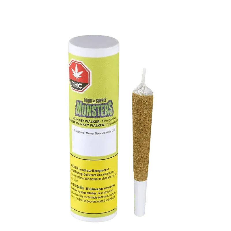 Introducing the Good Supply Monsters. Monkey Walker came to life working in the lab late one night – combining two iconic indica strains, Monkey Butter and Starwalker Kush into an enormous 2.3g pre-roll that packs a sky-high THC content of 1,000mg in each pre-roll.