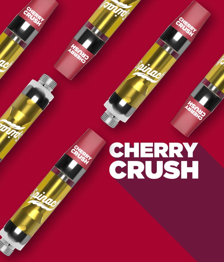Crush that sweet craving with fresh cherry flavour notes bursting from our Spinach® Cherry Crush 1g vape! With inspiration from the Cherry Crush strain, we’ve stepped up the delicious fruity tastes to make each puff like the cherry on top of any sesh. At 98.1% THC, you’re in for one sweet, tantalizing vape experience.