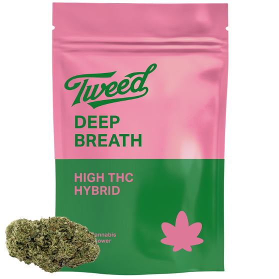 Tweed Deep Breath is a hybrid strain with high THC and minimal amounts of CBD. Deep Breath’s lineage that can be traced back to historical favs like OG Kush and Sour Diesel! Some associate berry, floral and diesel flavours with the Deep Breath strain.