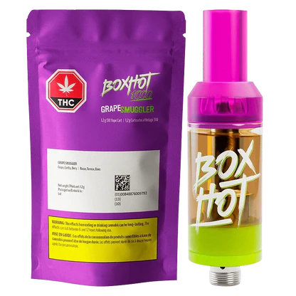 The BOXHOT 1000 Grape Smuggler is a powerful 1.2g indica-dominant 510 vape cart crafted for bold flavour lovers. Bursting with juicy, candy-sweet grape notes and smooth, fruity undertones, this cart delivers a nostalgic, rich taste with every pull. Designed with high-potency distillate and premium botanical terpenes, it offers a heavy, relaxing experience perfect for unwinding at the end of the day.