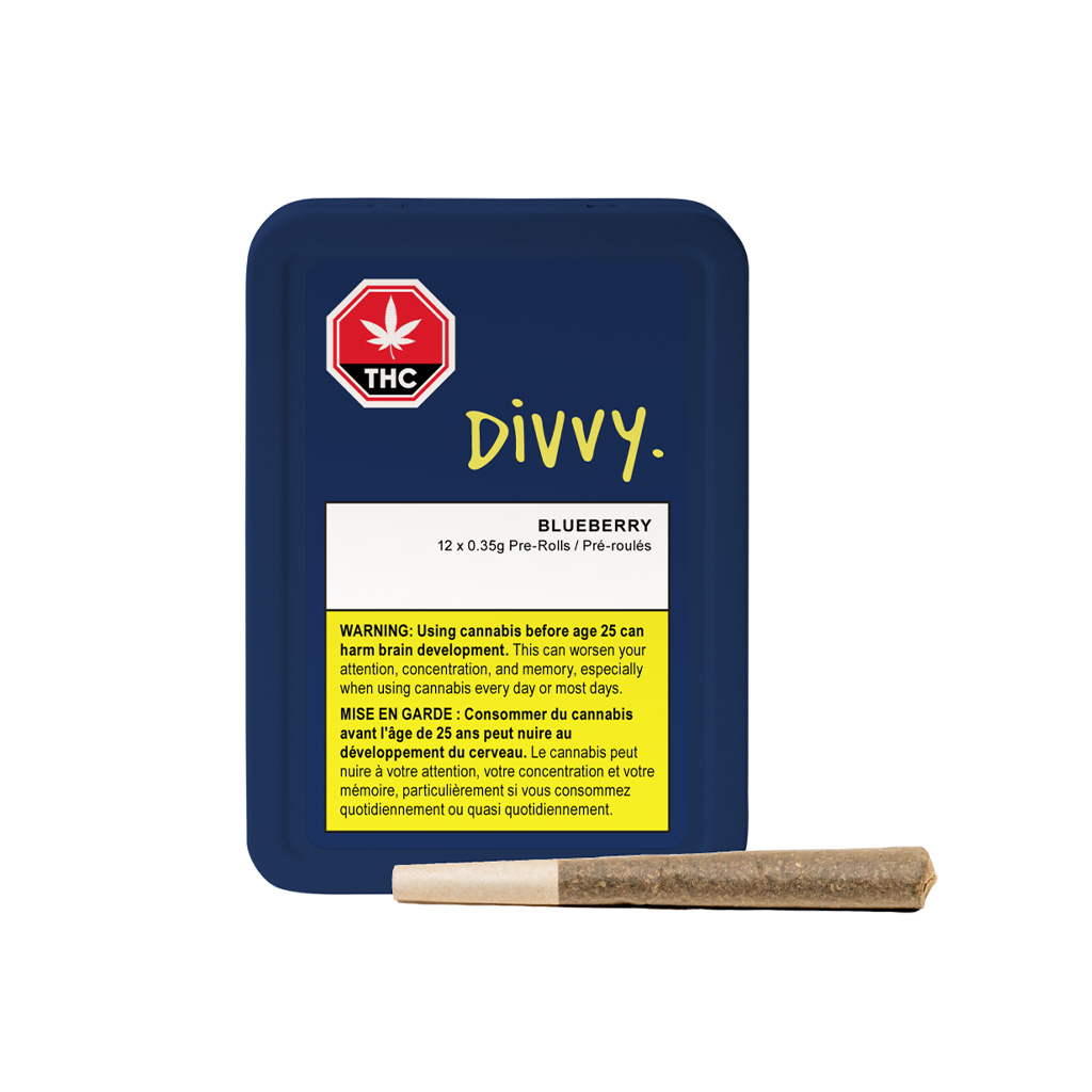 Divvy Blueberry Minis deliver 12 perfectly portioned 0.35g pre‑rolls (4.2g total) featuring an indica‑dominant cultivar known for its classic berry aroma and smooth, relaxing effects. Easy, convenient, and flavour‑forward — ideal for unwinding.