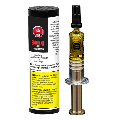 Introducing the Cloudberry Liquid Diamond Dispenser — a high-potency, sativa-forward syringe crafted by Endgame Cannabis for the bold, the curious, and the connoisseurs. This isn’t just concentrate — it’s a sensory experience, a euphoric escape, and a burst of pure, crystalline energy captured in 0.95g of Liquid Diamonds.