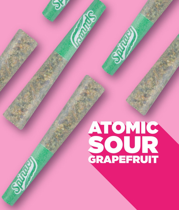 Spinach Atomic Sour Grapefruit PR3×0.5 g is a high‑potency, indica‑dominant pre‑roll pack containing three 0.5 g joints (1.5 g total). Produced by Spinach (Peace Naturals Project Inc.), this SKU is known for its intense sour citrus profile, bold terpene expression, and a euphoric‑yet‑heavy hybrid experience. It’s a popular choice for users who want strong flavour and strong effects at a value price point.